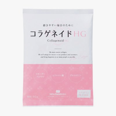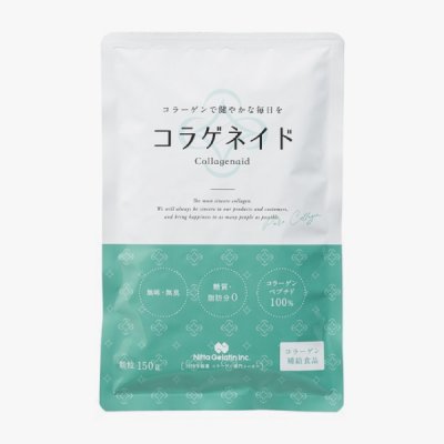 コラゲネイドとは無味・無臭、糖分・脂肪分ゼロの食べ物や飲み物に溶けやすい、粉末タイプのコラーゲンペプチドです。 たんぱく質であるコラーゲンは、食べると全てが消化によってアミノ酸に分解されるのではなく、かなりの割合でアミノ酸がいくつか繋がったペプチドのまま吸収されます。その中でコラーゲン特有のアミノ酸(ヒドロキシプロリン)を含むペプチドが、血流にのって身体の各部位に運ばれ、肌や骨、間接、血管などのコラーゲンの再合成などを働きかけます。